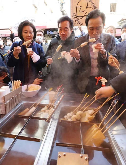 박영선 전 중소벤처기업부 장관과 우상호 더불어민주당 의원이 지난 23일 서울 남대문시장에서 어묵을 먹었다. 민주당의 서울시장 보궐선거 예비후보들이다. 국민의힘 나경원 예비후보는 같은 날 양천구 신월시장에서 호떡을 먹었다. 선거철임을 알리는 정치인들의 ‘먹방’ 사진들이 포털 뉴스난을 장식했다.